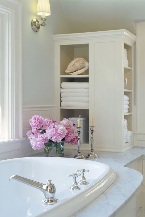 2. Alegeți dulapuri mari. Veți ajunge în punctul în care va trebui să depozitați prosoapele pentru baie în dulapul pentru haine și vă veți gândi atunci... ''de ce nu am cumpărat pentru un dulap mai mare?!'' 3. Optați pentru decorațiuni colorate. Dacă nu sunteți siguri de stilul în care vreți să decorați baia, mergeți pe o variantă care vă permite să schimbați des accesoriile. Dacă faianța este într-o culoare deschisă, cu atât mai bine. Alegeți suporturi colorate pentru săpun, un coș de gunoi cu modele haioase sau prosoape cu modele florale.