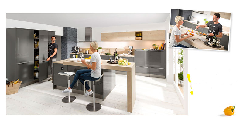In schimb, insula de bucătărie ocupă spațiu mai puțin, are funcționalități diferite, iar dacă Nolte este artizanul, fiecare centimetru va avea o utilitate: gătit, luat masa și cel mai interesant ... depozitat!