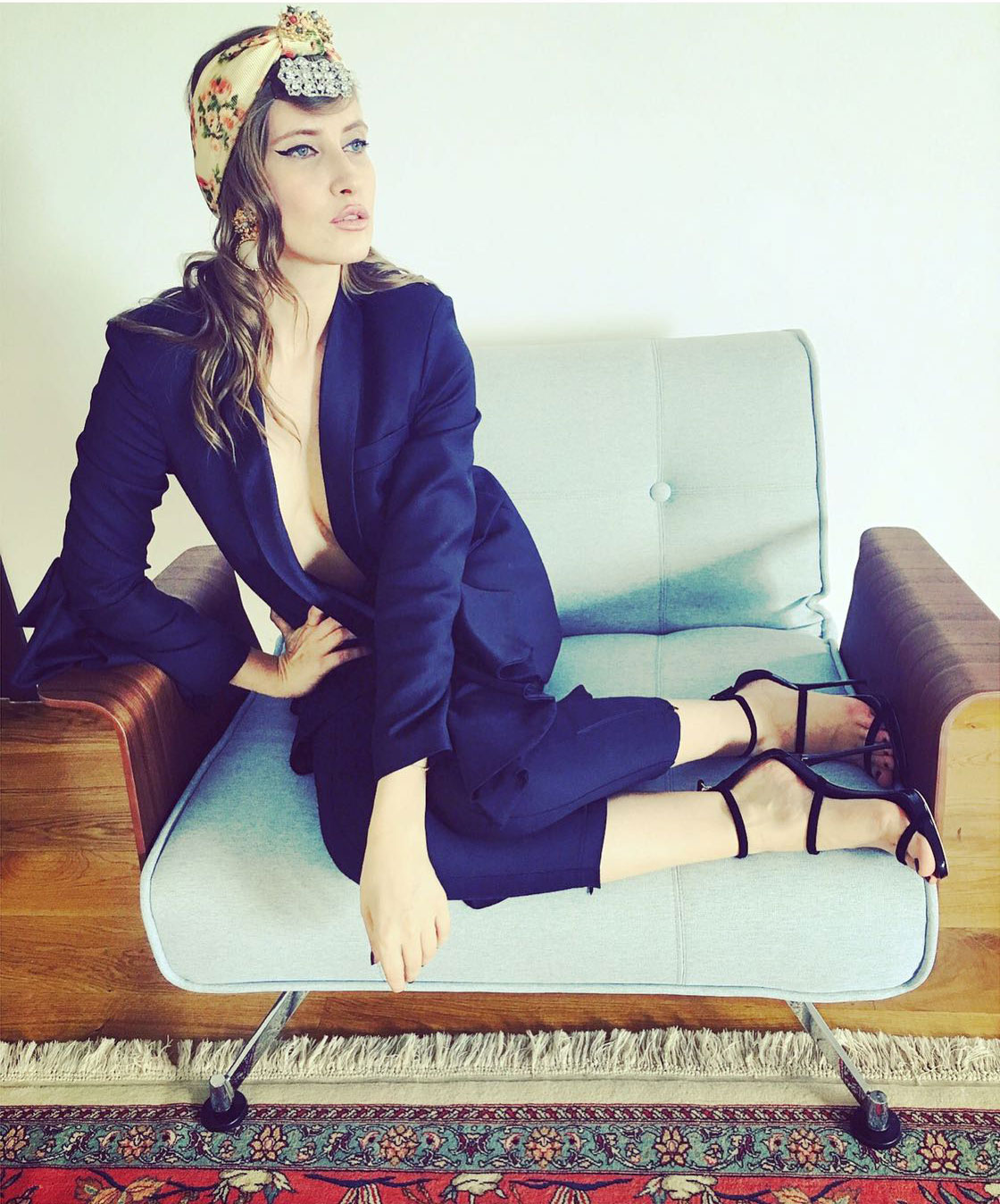 § Domnița poartă Black virgin wool blazer & Black pants with ruffles by PNK Casual, Harmony velvet sandals by Giuseppe Zanotti, Iulia Albu Les Merveilles Jewellery.