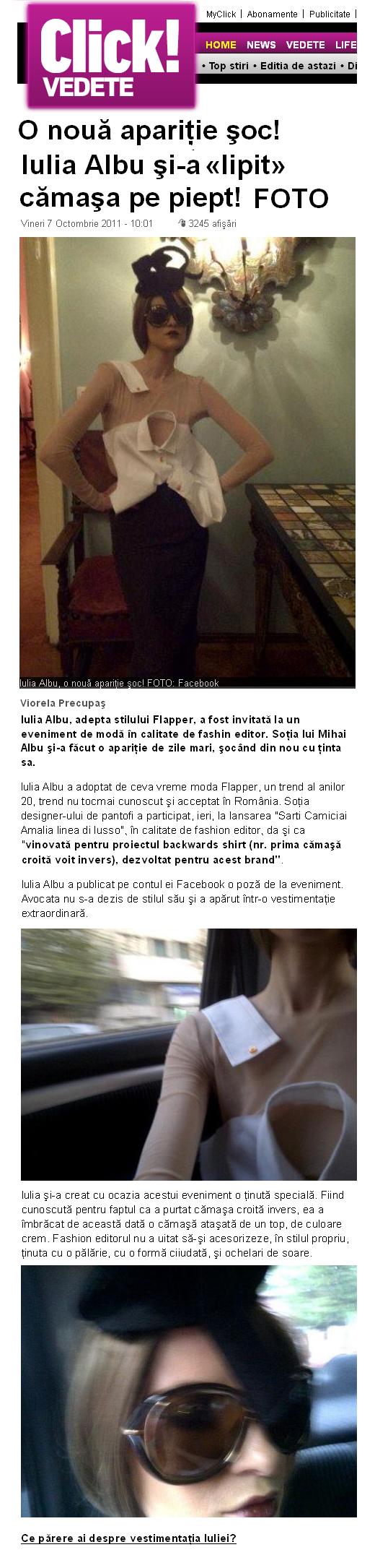 Look-ul zilei: Iulia Albu, intr-o camasa purtata "cu spatele in fata" pe www.perfecte.ro IULIA ALBU EXCLUSIVE! coming soon... Kiss, kiss, kisses! Flapper Girl