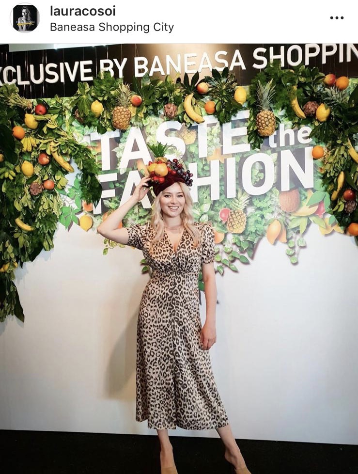 Laura Cosoi a vrut să se simtă pentru o zi Iulia Albu. Nu. Laura Cosoi a vrut să se pozeze purtând niște fructe pe cap, sau, probabil că acest lucru făcea parte din "scenariul" evenimentului. Nu-mi displace rochia, însă, cu siguranță, nu este potrivită decat, maxim, pentru a merge cu prietenele la o cafea" si in nici un caz pentru un eveniment. Încălțămintea este deosebit de urată. Aș aprecia dacă pe viitor ar lucra puțin la partea de makeup si posing.