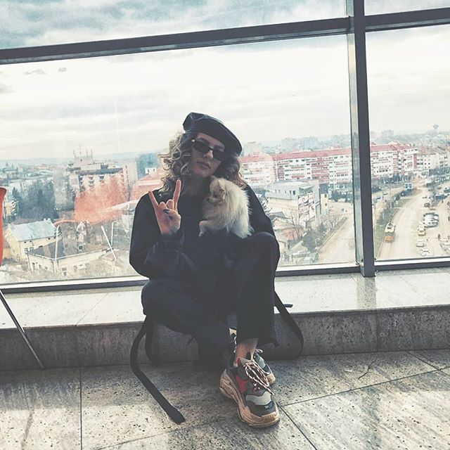 Lidia Buble și-a luat/ își etalează un cățel pufos. Pufoșenia completează fericit compoziția stilistică, dar mi-aș dori ca micul patruped să nu rămână la stadiul de accesoriu.