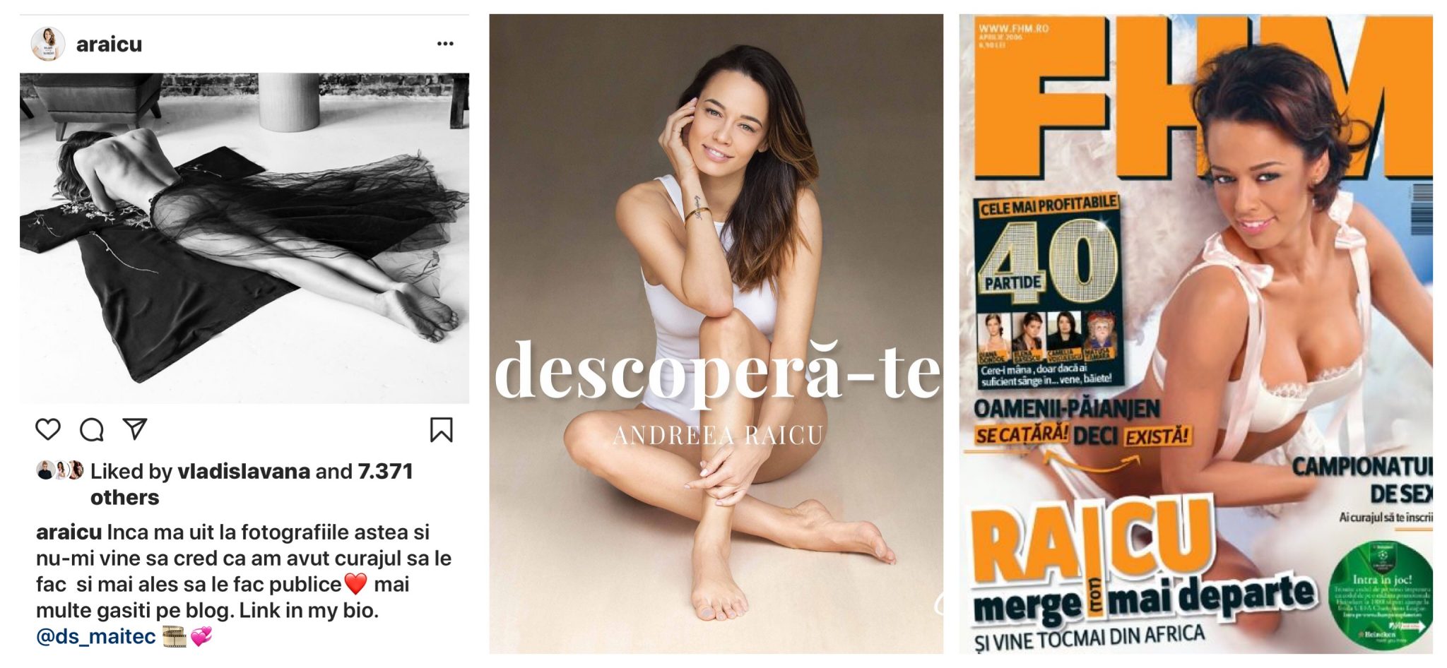 Rămân câteodată … marcată de generozitatea cu care anumite actuale sau foste vedete decid să împărtășească experiența lor în această lume, cu noi, muritorii de rând. Consider absolut fascinantă călătoria continuă a Andreei Raicu în propriul gol pe care îl afișează ostentativ aproximativ în fiecare an pe te miri ce copertă de revistă. Firește, de fiecare dată, acest gol este unul perpetuu nou și total neexplorat (din nou). Departe de mine intenția de a judeca în vreun fel natura sub care Miz Raicu alege să se “descopere” sau nu, pe coperta 1, 2, 3, 4 dar , nici nu pot să nu admir perseverența cu care stimabila își expune vasta experiență de viață într-un “romano-ghid de orientare” dedicat femeilor care doresc să se “descopere” și ele la fel ca Andreea Raicu, în căutarea succesului. Firește, orice căutare trebuie să aibă și un rezultat, rezultatul fiind evident, în acest caz, suc – cesul. Îmi este dificil să înțeleg exact la ce suc-ces se referă Andreea Raicu dar eu sunt, întradevăr, câteodată, destul de limitată în viziuni și “descoperiri”. Cred că este minunat să fii Andreea Raicu, să te pozezi în fiecare an “in gol” și să te miri tot tu că ai făcut-o (culmea, din nou) prima dată. Cred că într-un fel, este ca atunci când ești copil și primești pentru prima oară o cutie cu ciocolată, doar că tu nu esti copil iar ciocolata este ... altceva. Va las să admirați tacticos câteva imagini de care m-am “impiedicat” întâmplător pe internet căutând “noile” imagini cu Andreea Raicu goală și las la aprecierea voastră cât de gol este, de fapt, un plin gol. Si desigur, cat de ...nou!Prima dată, noua prima dată, noua nouă prima dată, ....