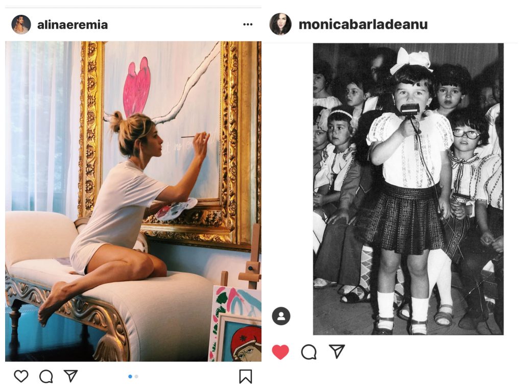 Alina Eremia și Monica Bârlădeanu își targheteaza copilul interior una crezându-se mare artistă, cealaltă postând o fotografie foarte frumoasă de când avea câțiva anișori. Se vede că Monicăi îi plăcea cu microfonul de pe atunci, ceea ce nu este rău deloc. Oricum , măcar în cazul ei să fie bine, că de Alină Eremia e destul de rău. Sigur că Alină pictează “abstract” sau are o versiune proprie și complet originală de reprezentare grafica, motiv pentru care, sincer, nu aș dori să o încurajez în această direcție. Nu de alta, dar e mai bine să fii un bun colecționar de artă decât un pictor închipuit.