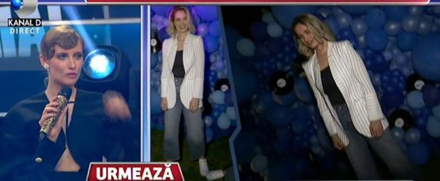 Raluka are o perucă roșcată care are o poveste foarte interesantă, dar pe care nu vi-o voi spune în această seară. Oricum... mie îmi place cum îi stă roșcată, îmi place cum și-a pus acele agrafe în păr și îmi place și ce poartă în picioare, în sensul în care nu este ceva care să iasă în evidență. Ar putea să îmbunătățească anumite lucruri, în ceea ce privește manichiura, pedichiura, dar poartă un costum de catifea, iar costumul de catifea este o piesă pe care ar trebui toate să o avem sau să o aveți, motiv pentru care Raluka va primi de la noi astăzi... +WOW!