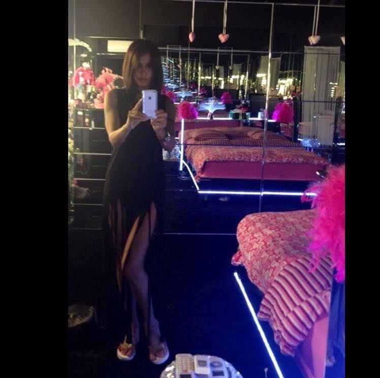 Avem una din rarele fotografii din iatacul Oanei Zăvoranu. Nu că ar fi foarte pe gustul meu, dar nu văd nimic rău în câteva inimioare și un perete plin de oglinzi.