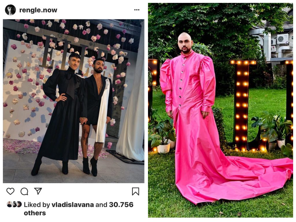 Ca un bărbat să se afișeze într-o rochie, ar fi fost o revoluție acum 15 ani. În contextul actual această abordare reprezintă pur și simplu o preluare a unei tendințe internaționale sincer, aproape passée. Da, băieții se pot îmbrăca în rochii, însă un bărbat adevărat va ști întotdeauna că, chiar dacă alege să poarte o rochie, aceasta trebuie să fie perfectă. Departe de a atinge un ideal, sunt atât Emil Rengle, prietenul lui cât și Amos Midas. Dacă ar fi totuși să aleg, trecând peste faptul că mai mult de patru bărbați prezenți la eveniment au purtat rochie și, ocolind desigur previzibilitatea acestui fapt, ținuta lui Rengle este singura corect construită și asumată, iar asta nu vine ca o surpriză. Așadar, Emil, astazi ai un 8,9 !